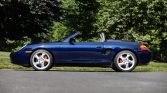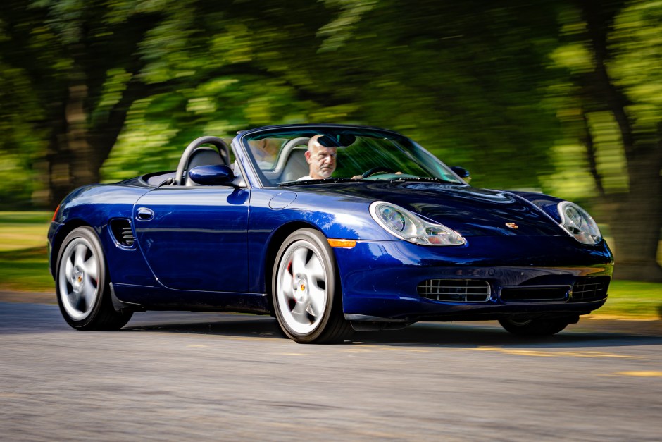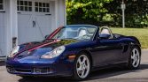 This 2001 Porsche Boxster S is finished in Lapis Blue Metallic over Graphite Grey full leather and is powered by a 3.2-liter flat-six paired with a six-speed manual transaxle. Features include the Sport Package, a Metropol Blue soft top, 18″ Turbo-look wheels, a deployable rear spoiler, xenon headlights, cruise control, and an Alpine touchscreen stereo with a rearview camera.