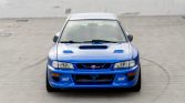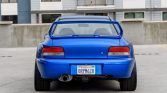 Power is sent to all four wheels via a six-speed manual transmission sourced from a 2004 STI and an R180 limited-slip rear differential. Whiteline differential cradle bushings are fitted along with Group N transmission mounts and drivetrain bushings. A downpipe exhaust system is fitted without a catalytic converter, although it is included in the sale along with other removed exhaust components. The car cannot pass a California emissions test and therefore cannot be sold to an in-state private party buyer.