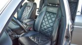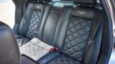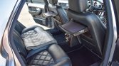 The rear passengers also have heated seats with quilted inserts, and fold-down tray tables with engine-turned trim store in the front seatbacks.