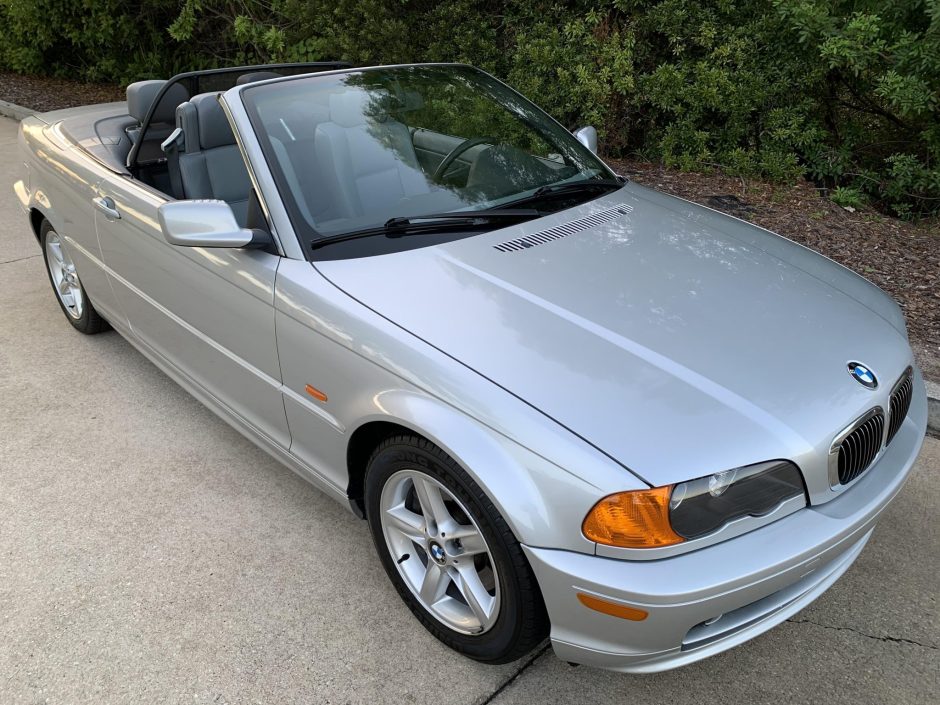 This 2002 BMW 325Ci convertible has spent much of its life in Florida and was acquired by the seller in early 2021. Now showing 67k miles, the car is finished in silver over grey leather and is powered by a 2.5-liter inline-six paired with a five-speed automatic transmission. Equipment includes a power-retractable black soft top, five-spoke 16″ wheels, automatic climate control, power-adjustable front seats with position memory, a wind deflector, and a factory CD stereo. Service in…