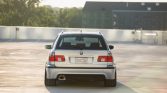 This 2002 BMW 540i Sport Wagon was acquired by the seller in 2017. The car is modified with a turbocharged and stroked 402ci LS2 V8 paired with a T56 six-speed manual transmission, an OS Giken limited-slip differential, 18″ AC Schnitzer multi-piece wheels, and FK coilovers as well as updated front brakes and exterior lighting. Additional equipment includes a power sunroof, air conditioning, technical graphite interior trim, E39 M5 Heritage Leather front seats, and a JL audio system.