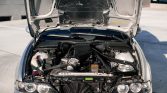 The black interior has been fitted with Heritage leather front seats from an E39 M5, technical graphite trim, and a Raceseng weighted shift knob. Additional equipment includes air conditioning, power windows and locks, and a hidden stereo system utilizing JL audio hardware.