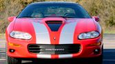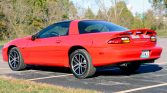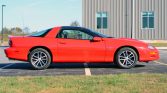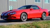 All 3,369 of the 35th Anniversary edition Camaros were finished in Bright Rally Red with silver graphics on the hood and hatch as well as commemorative fender badges. Features include black T-top roof panels, fog lamps, body side moldings, and power mirrors. The SS package added a functional hood scoop and a rear spoiler.