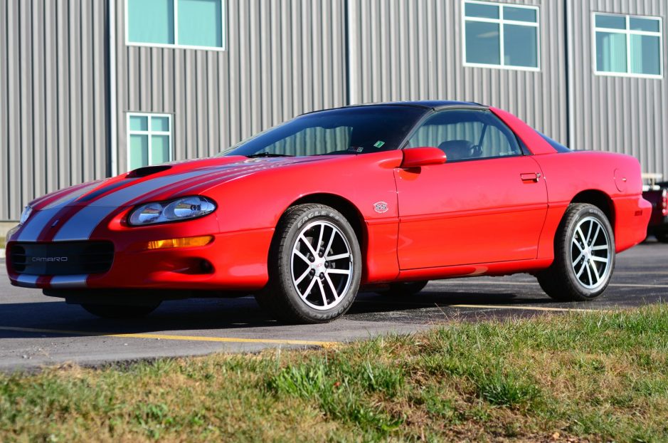 This 2002 Chevrolet Camaro Z28 SS coupe is a 35th Anniversary edition that was acquired by the current owner in Pennsylvania in February 2006 and subsequently relocated to Missouri. The car is finished in Bright Rally Red over two-tone Ebony and gray leather and is powered by a 5.7-liter LS1 V8 paired with a four-speed automatic transmission. Equipment includes the SS Performance and Appearance package, the Preferred Equipment Group, 35th Anniversary badging, removable T-top roof panels, silver…
