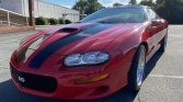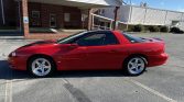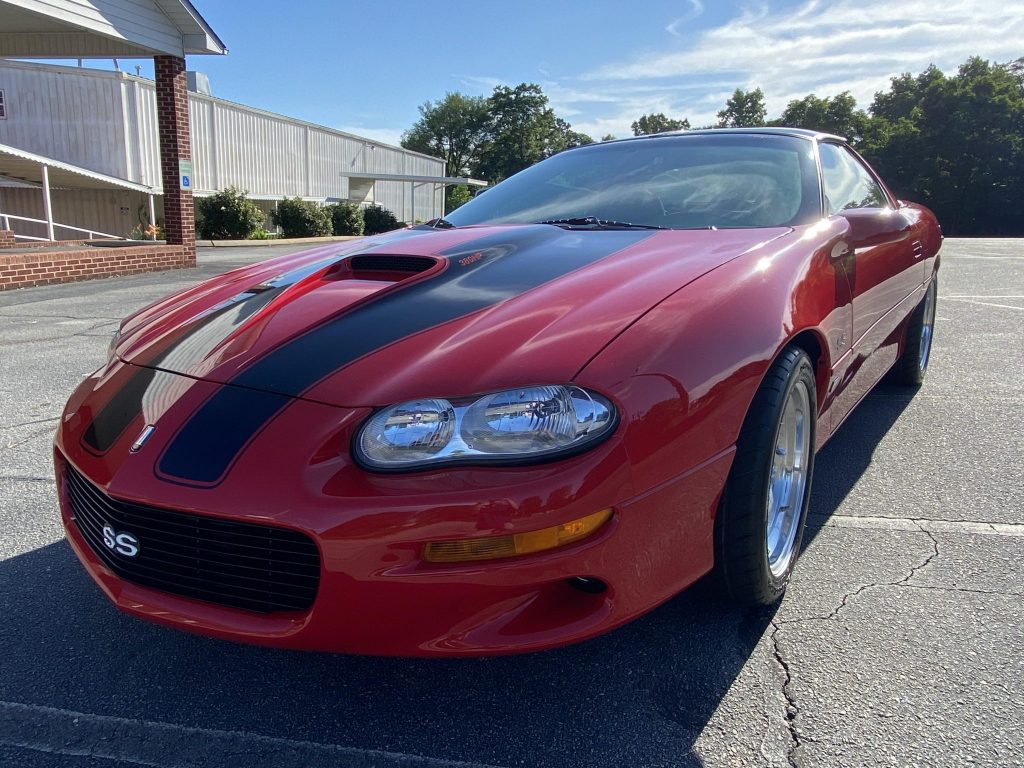 This 2002 Chevrolet Camaro SS is one of 100 examples modified by Berger Chevrolet in Grand Rapids, Michigan, and now shows just 642 miles. Dealer-installed equipment includes a cat-back exhaust system, high-flow air box, 17″ FIKSE wheels, white-dialed gauges, and unique exterior styling accents. The car is finished in red with black stripes over gray leather and is powered by a 5.7-Liter V8 paired with a six-speed manual transmission.