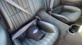 The cabin features seating trimmed in gray leather with a matching dash, door panels, and carpeting. Amenities include air conditioning, power windows, a factory Monsoon CD stereo, and “Berger SS” plaques.