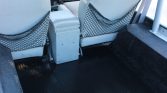 The three-spoke steering wheel sits ahead of a 90-mph speedometer with auxiliary gauges. The speedometer was replaced during the refurbishment, and the inset coolant temperature and fuel gauges do not work. The five-digit mechanical odometer shows 15k miles.