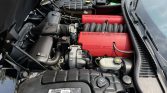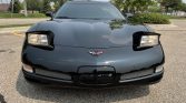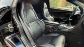 The car is finished in black and differs from the standard Corvette with weight-saving glass, reduced sound dampening material, and a fixed roof for increased chassis stiffness. Features include pop-up headlamps, Z06 fender badges, rear brake vents, and quad exhaust outlets.