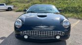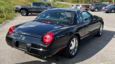 This 2002 Ford Thunderbird was recently acquired by the seller from the original owner and is finished in Evening Black over black leather. Power is supplied by a 3.9-liter V8 paired with a five-speed automatic transmission, and equipment includes a removable hardtop, a black soft top, a convertible top boot, an in-dash six-CD changer, dual-zone automatic climate control, power-adjustable seats, integrated fog lights, and chrome 17″ wheels.