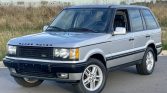 This 2002 Land Rover Range Rover 4.6 HSE is finished in silver over black leather and is powered by a 4.6-liter V8 linked with a four-speed automatic transmission and a dual-range transfer case. Equipment includes an electric sunroof, automatic climate control, navigation, an AM/FM cassette stereo, an analog clock, heated power-adjustable front seats, 18″ alloy wheels, and a coil spring conversion.