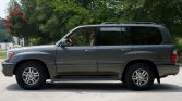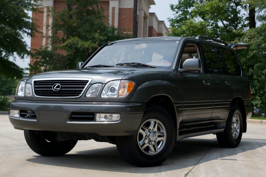 This 2002 Lexus LX470 was initially delivered to Lexus of Memphis, Tennessee, and spent time in Raleigh, North Carolina, before being acquired by the seller in May 2021. The truck is finished in Riverock Green Mica over ivory leather and is powered by a 4.7-liter 2UZ-FE V8 paired with a four-speed automatic transmission, a dual-range transfer case, and a locking center differential. Additional features include Adaptive Variable Suspension, Adjustable Height Control, fog lights, third-row seating, and power-adjustable and heated…