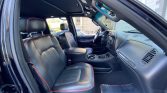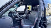 Black-finished 20″ Fuel beadlock-style wheels wear 33″ Nitto Trail Grappler M/T tires. Braking is handled by yellow Brembo four-piston calipers over cross-drilled rotors up front, and a Hotchkis Performance front sway bar has also been fitted.