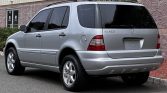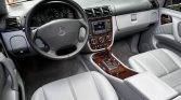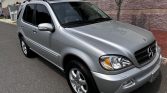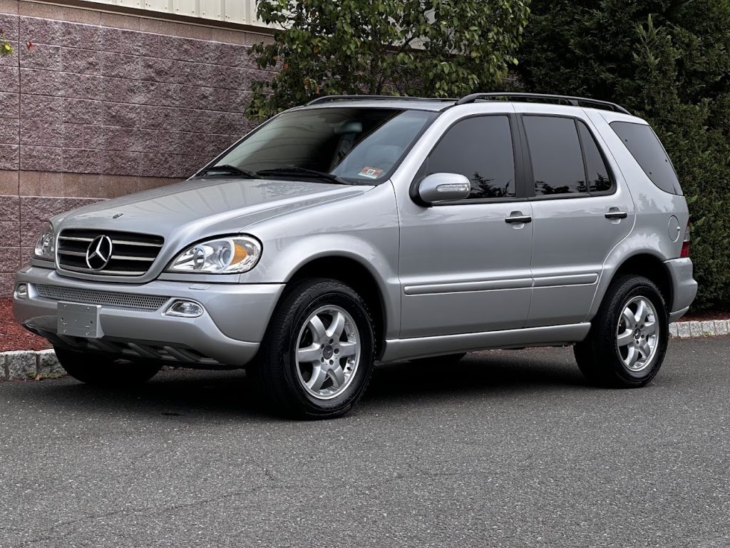 This 2002 Mercedes-Benz ML500 is powered by a 5.0-liter V8 linked to a five-speed automatic transmission and a dual-range transfer case, and it is finished in Brilliant Silver Metallic over Ash leather. Features include a glass sunroof, power rear-quarter windows, xenon headlights, 17″ six-spoke alloy wheels, heated power-adjustable front seats, front-seat position memory, folding second-row seats, navigation, a Bose sound system, tinted windows, cruise control, and automatic climate control.