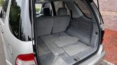The cabin features heated power-adjustable front seats with position memory trimmed in Ash leather, and burl wood trim accents the dash and doors. Interior amenities include folding second-row seats, power rear-quarter windows, a lockable safe, a fold-down infotainment screen, navigation, a Bose sound system, cruise control, and automatic climate control. The cabin air filter was replaced in preparation for the sale.