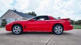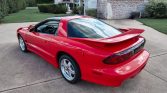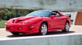 This 2002 Pontiac Firebird Trans Am WS6 is powered by a 5.7-liter LS1 V8 paired with a six-speed manual transmission and a Torsen limited-slip differential and is finished in Bright Red over ebony leather. Equipment includes the WS6 Ram Air Performance & Handling Package, removable glass roof panels, 17″ polished aluminum wheels, a functional Ram Air intake system, traction control, a Hurst shifter, a low-restriction dual exhaust system, air conditioning, a 10-speaker Monsoon audio system with CD…