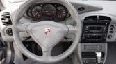 The cabin features Graphite Grey partial leather upholstery with a matching dashboard, center console, carpets, and door panels. The shift knob and parking brake handle feature aluminum and wood inlays, and additional amenities include automatic climate control, cruise control, a Porsche CDR-220 stereo, a wind deflector, and heated front seats.