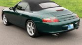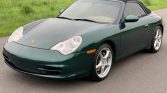 This 2002 Porsche 911 Carrera 4 cabriolet is finished in green over tan leather and is powered by a 3.6-liter flat-six mated to a six-speed manual transaxle and all-wheel drive. Equipment includes 18″ Carrera classic wheels, a power-operated black soft top, the Advanced Technic package, the Design package, bi-xenon headlights, heated and power-adjustable seats, automatic climate control, park assist, and a Bose Sound System. The car was first registered in Maine and later relocated to Florida where…