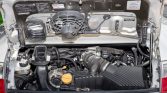 The 3.6-liter flat-six was rated at 320 horsepower and 273 lb-ft of torque when new and drives the rear wheels through a six-speed manual transaxle. Service in 2019 included installing an LN Engineering IMS bearing replacement and replacing the clutch assembly, timing chain tensioner, water pump, thermostat, drive belt, ignition coils, and spark plugs. The oil was changed in 2020, and the vacuum reservoir and control valves were replaced in 2021.
