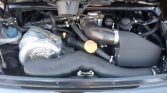 This 2002 Porsche 911 Carrera coupe is powered by a supercharged 3.6-liter flat-six mated to a six-speed manual transaxle, and it is finished in black over matching leather upholstery. Equipment includes xenon headlights with washers, power-adjustable and heated front seats, and 18″ Carrera wheels, while modifications include a VF Engineering supercharger, upgraded coil packs, Bilstein B8 front struts, and a Ben Auto Design short-shift kit. The car was first registered in Wyoming, and it spent time in…