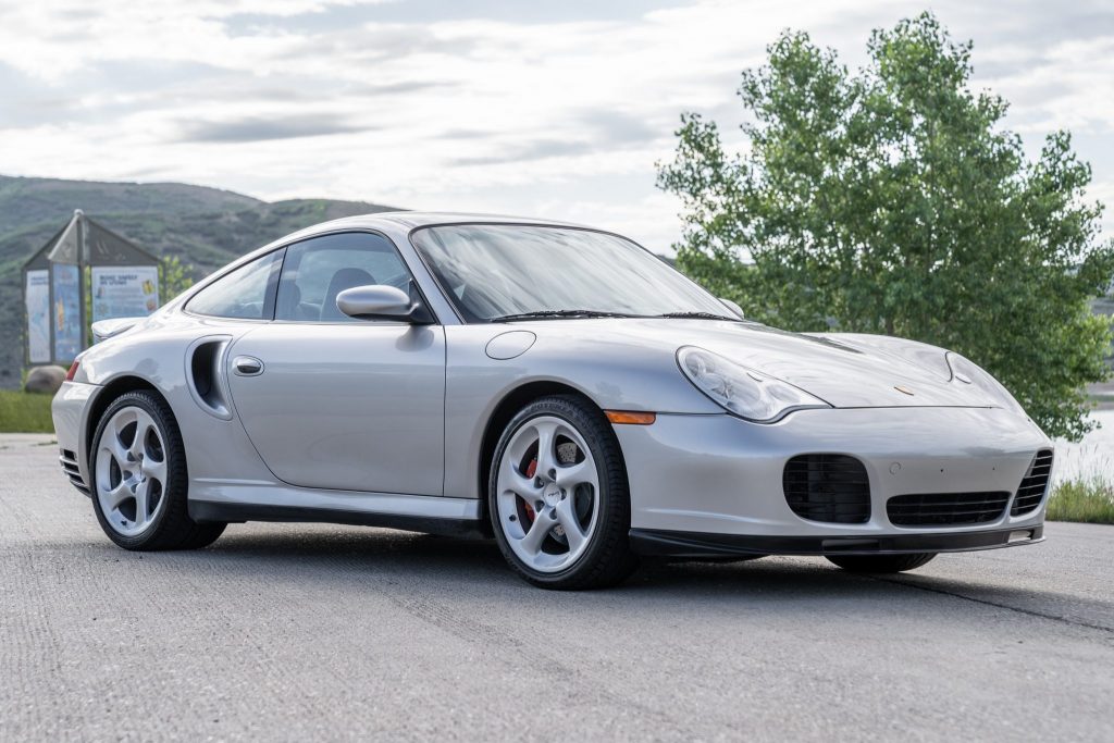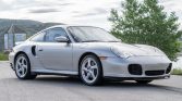 This 2002 Porsche 911 Turbo coupe is finished in Arctic Silver over a grey leather interior, and it is powered by a twin-turbocharged 3.6-liter flat-six paired with a six-speed manual transaxle and an all-wheel-drive system. The seller’s family acquired it in April 2004, and the seller took title in December 2018. Features include 18″ Turbo Twist wheels, xenon headlights, an electric sunroof, heated and power-adjustable front seats, automatic climate control, Bose speakers, and an aftermarket Pioneer head…