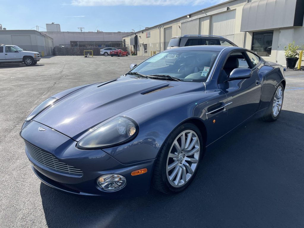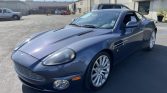 This 2003 Aston Martin V12 Vanquish is finished in Slate Blue over Caspian Blue leather, and it is powered by a 5.9-liter V12 mated to an electro-hydraulically operated six-speed automated transmission and a limited-slip differential. Features include 19″ 12-spoke wheels, rear parking sensors, power-adjustable front seats, a rear seat delete, automatic climate control, and a factory cassette stereo with a CD changer.