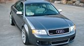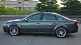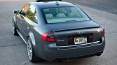 This 2003 Audi RS6 is finished in Daytona Grey Pearl Effect over silver Nappa leather and is powered by a twin-turbocharged 4.2-liter V8 mated to a five-speed automatic transaxle and Quattro all-wheel drive. Factory equipment includes the Warm Weather and Sports Exhaust packages, heated front and rear seats, Bose audio, dual-zone automatic climate control, and cruise control, while modifications consist of 19″ Avant Garde M510 wheels, an MTM TCU tune, Hotchkis sway bars, a Cupra R-style front…
