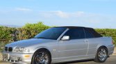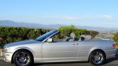 This 2003 BMW 330i is finished in Titanium Silver with a black convertible top over gray Montana leather upholstery and is powered by a 3.0-liter M54 inline-six paired with a five-speed Steptronic automatic transmission. Equipment includes xenon headlights, fog lamps, 17″ chrome wheels, heated and power-adjustable front sport seats, fine wood trim, automatic climate control, an on-board computer, and a CD stereo with a Harman/Kardon audio system. The car remained registered in California until acquisition by the seller in 2021.