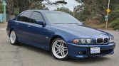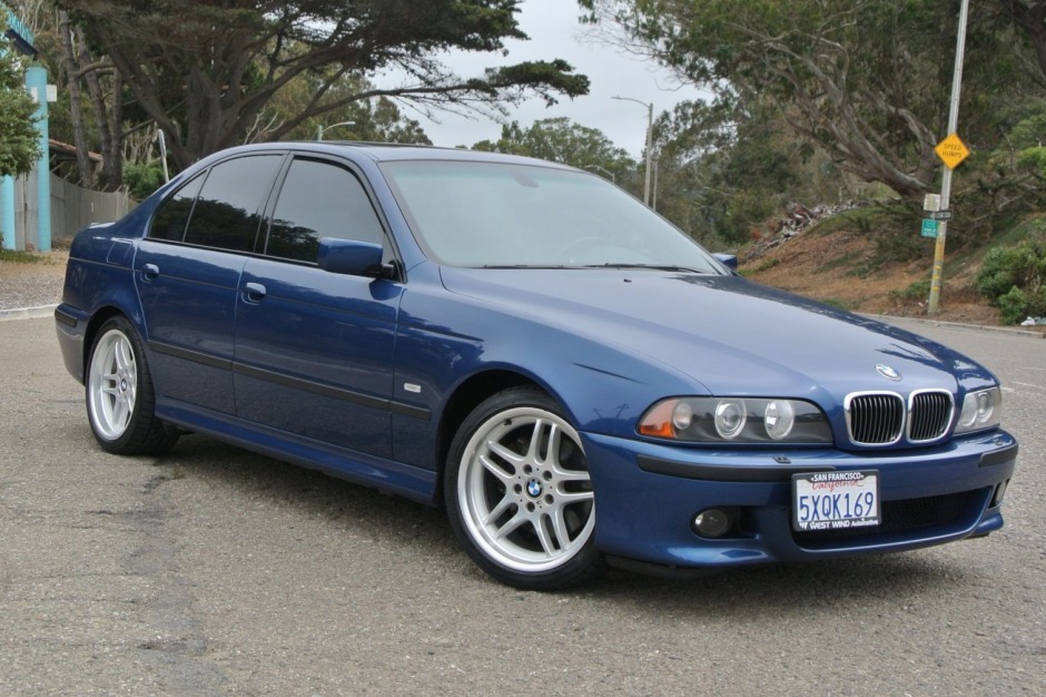 This 2003 BMW 540i is finished in Topaz Blue over gray leather and is powered by a 4.4-liter V8 paired with a six-speed manual transmission. Equipment includes the Sport Package, 18″ M-Parallel wheels, xenon headlights, fog lights, a sunroof, heated sport seats, and navigation. The seller acquired the car in 2019, and subsequent work is said to have included paintwork and replacement of the tires, windshield, water pump, thermostat, and radiator hoses.