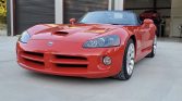 Introduced for the 2003 model year, the third-generation Viper was initially only offered as a roadster. This example is finished in Viper Red (PRN) and features a black soft top, HID headlights, integrated fog lamps, a hood scoop and louvers, power mirrors, side-exit exhaust outlets, and a rear diffuser. The rear decklid struts were reportedly replaced in September 2021.