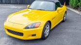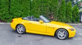 This 2003 Honda S2000 is finished in Spa Yellow Pearl over black leather and is powered by a 2.0-liter DOHC inline-four mated to a six-speed manual transmission and a limited-slip differential. Features include a power-retractable black convertible top, cruise control, air conditioning, a factory CD stereo, and xenon headlights.