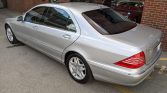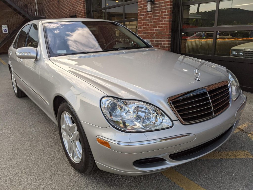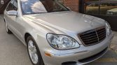 This 2003 Mercedes-Benz S500 is finished in silver over black Nappa leather, and it is powered by a 5.0-liter V8 paired with a five-speed automatic transmission. Equipment includes bi-xenon headlights, a sunroof, 17″ alloy wheels, heated and power-adjustable front seats, dual-zone automatic climate control, cruise control, COMAND infotainment with navigation, a rear-window roller blind, and a CD changer.