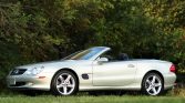 This 2003 Mercedes-Benz SL500 is a Designo Launch Edition model that is finished in Designo Silver Metallic over Charcoal leather upholstery. Power comes from a 5.0-liter V8 paired with a five-speed automatic transmission. Equipment includes a retractable hardtop, bi-xenon headlamps, Active Body Control suspension, heated and ventilated multi-contour seats, a black Alcantara headliner, burl walnut trim, dual-zone automatic climate control, and COMAND infotainment with a Bose sound system. The car spent time in multiple states before being…