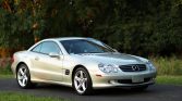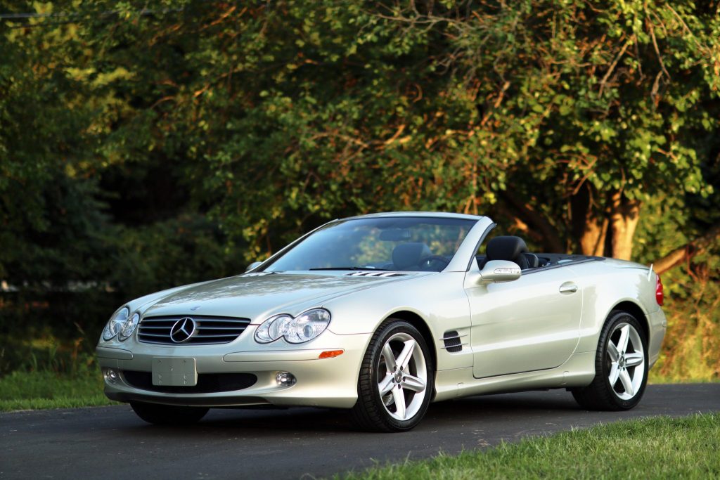This 2003 Mercedes-Benz SL500 is a Designo Launch Edition model that is finished in Designo Silver Metallic over Charcoal leather upholstery. Power comes from a 5.0-liter V8 paired with a five-speed automatic transmission. Equipment includes a retractable hardtop, bi-xenon headlamps, Active Body Control suspension, heated and ventilated multi-contour seats, a black Alcantara headliner, burl walnut trim, dual-zone automatic climate control, and COMAND infotainment with a Bose sound system. The car spent time in multiple states before being acquired by the seller in July 2021.