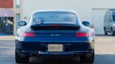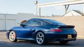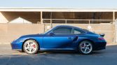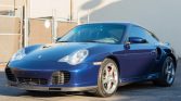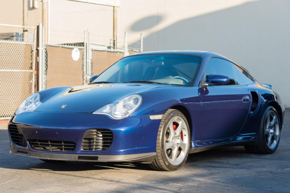 This 2003 Porsche 911 Turbo is finished in Lapis Blue Metallic over gray leather and powered by a twin-turbocharged 3.6-liter flat six with a six-speed manual transaxle and all-wheel drive. Modifications are said to include a GT2-specification clutch and lightened flywheel, Ultimate Motorwerks engine management software, WEVO semi-rigid powertrain mounts, a B&M short shifter, and Alcantara interior accents. Additional factory equipment includes xenon headlights, a sunroof, red seat belts, and a Bose audio system. Subsequent work has reportedly included refinishing the wheels, replacement of the tires, and reinstallation of the stock exhaust system.