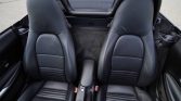 The heated seats are upholstered in black leather, and the cabin features a matching dashboard, carpets, and door panels. Amenities include the Digital Sound package, a wind deflector, aluminum-look trim, automatic climate control, cruise control, an alarm, a CD stereo, and Porsche-script floor mats. The climate control screen was replaced in October 2021.