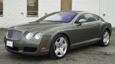 This 2004 Bentley Continental GT is finished in Cypress Metallic over black leather and powered by a 6.0-liter twin-turbocharged W12 that drives all four wheels through a six-speed automatic transmission. Additional equipment includes 19″ wheels, parking sensors, power-adjustable heated front seats, navigation, and dual-zone automatic climate control.