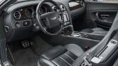 Silver-finished 19″ alloy wheels feature Bentley-branded center caps and wear 275/40 Pirelli PZero tires. The car is equipped with a driver-adjustable air suspension, and braking is handled by ventilated four-wheel discs.