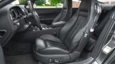 The cabin is upholstered in black leather with a matching dash, door panels, and carpets. Wood veneers accent the dash and center console, and additional amenities include a dash-mounted Breitling clock, navigation, dual-zone automatic climate control, cruise control, and power-adjustable heated front seats with position memory.
