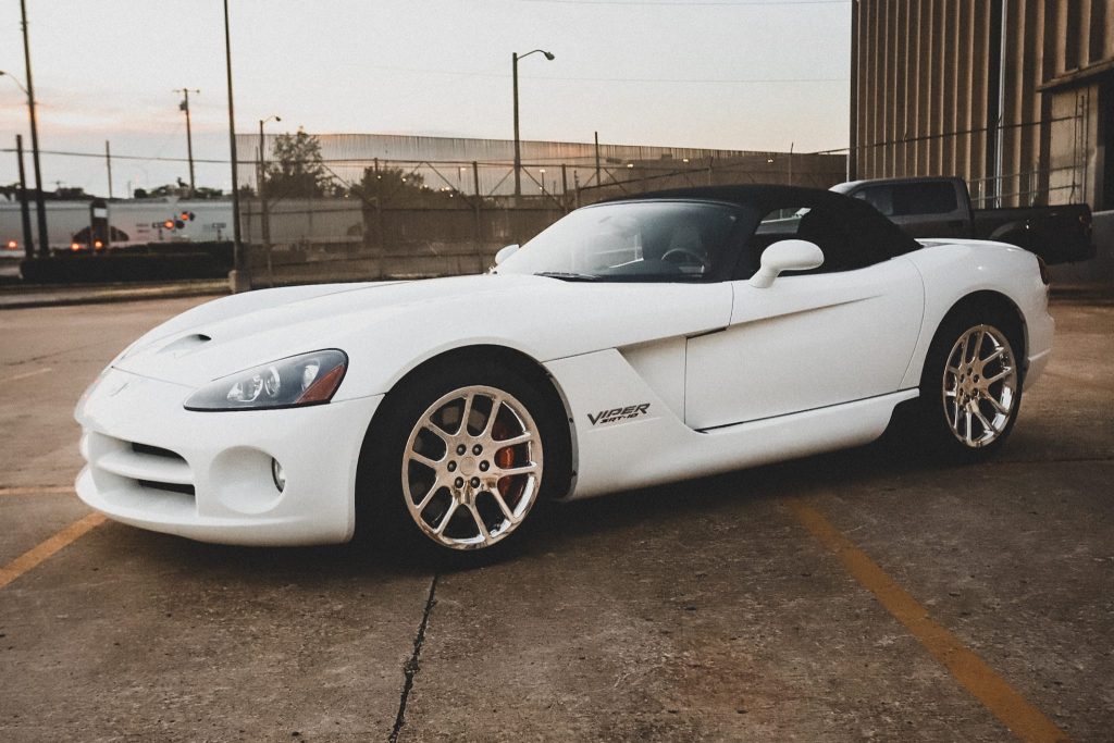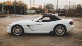 This 2004 Dodge Viper convertible is #24 of 200 Mamba Editions produced and now shows just 1,900 miles. Finished in Viper White over two-tone black and red leather, it is powered by an 8.3-liter V10 paired with a Tremec six-speed manual transmission and a limited-slip differential. Additional equipment includes a black soft top, chrome-finished 18″ and 19″ aluminum wheels, red brake calipers, side-exit exhaust pipes, air conditioning, and a factory stereo with a CD changer. The car…