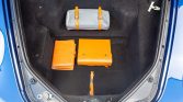 Five-spoke 18” alloy wheels wear 235/40 front and 275/40 rear Michelin Pilot Sport tires. Braking is handled by yellow Ferrari-branded calipers fitted over cross-drilled rotors.