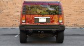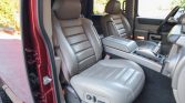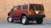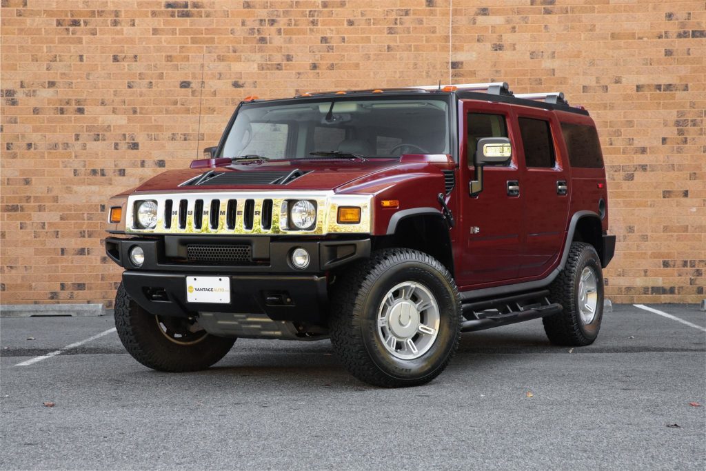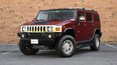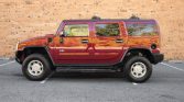 This 2004 Hummer H2 is finished in Red Metallic over Wheat leather and is powered by a 6.0-liter Vortec V8 paired with a four-speed automatic transmission and a dual-range transfer case. Equipment includes a sunroof, cab lighting, tinted windows, a locking rear differential, 17″ alloy wheels, fog lights, a roof rack, and a factory infotainment system with navigation and Bose audio.