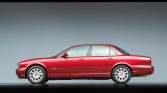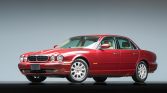 The XJ was redesigned for the 2004 model year, and this example is finished in Radiance Red Metallic (CHB). Equipment includes fog lights, a power-operated sunroof, rear parking sensors, and dual exhaust outlets.