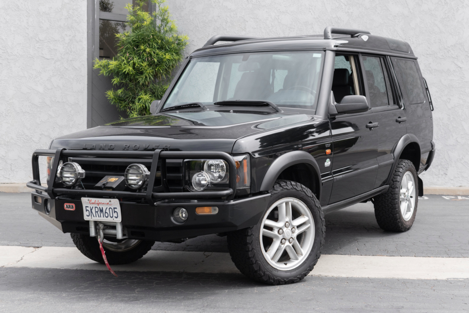 This 2004 Land Rover Discovery SE7 has been registered in California since new and is finished in Java Black over a black leather interior. Power is provided by a 4.6-liter V8 linked with a four-speed automatic transmission, a dual-range transfer case, and a locking center differential. The truck features an ARB front bumper and a suspension lift kit, and additional equipment includes a Smittybilt winch, a receiver hitch, fog lights, driving lights, power-adjustable heated front seats, fold-away…