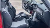 The car is finished in Chili Red and features a checkerboard roof as well as black mirror caps, wheel arch flares, and side skirts. Additional exterior features include a hood scoop, a roof spoiler, fog lights, and dual central exhaust outlets. No accidents are listed on the Carfax report.