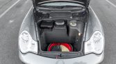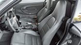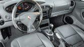 The cabin is trimmed in Graphite Grey leather and features power-adjustable front seats with Porsche crests embossed on the headrests along with position memory for the driver. Carbon trim adorns the steering wheel, shifter, handbrake grip, instrument surround, dash, and center console, while amenities include a Becker stereo, a remote six-disc CD changer, the Bose High End sound system, a wind deflector, automatic climate control, and Porsche-script floor mats.