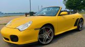 This 2004 Porsche 911 Carrera 4S cabriolet was sold new from Stevens Creek Porsche of San Jose, California, and resided in New York and Virginia before being acquired by the seller in 2018. The car is finished in Speed Yellow over black full leather and is powered by a 3.6-liter flat-six paired with a six-speed manual transaxle. Equipment includes the Carrera Power Kit, a speed-activated rear spoiler, automatic climate control, a Sony touchscreen stereo, integrated fog lights,…
