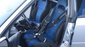 This 2004 Subaru Impreza WRX STi is finished in silver over black and blue cloth upholstery and is powered by a turbocharged 2.5-liter flat-four that drives all four wheels through a six-speed manual transmission. Equipment includes a Driver-Controlled Center Differential, an intercooler water sprayer, semi-automatic climate control, front and rear limited-slip differentials, an STi-specific aero kit, HID headlights, 17″ BBS wheels, and Brembo brakes. Modifications consists of a Cobb turbo-back exhaust system, upgraded sway bars, strut tower braces, a harness bar, a Cobb Stage II tune, and a Clarion stereo.