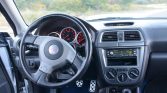 The leather-wrapped steering wheel features an STi logo and frames a central tachometer with a 7k-rpm redline, a 160-mph speedometer, and gauges for fuel level and coolant temperature. The digital odometer indicates 53k miles.