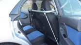 The cabin features seats upholstered in black cloth with blue inserts along with matching door panels and blue carpeting. Amenities include cruise control, semi-automatic climate control, performance design front seats with STi logos embroidered in the headrests, switches for headlight adjustment and intercooler water spray, and a Clarion stereo head unit. Arospeed five-point harnesses and a harness bar have been installed. The seller states that a passenger airbag recall was performed in September 2021.