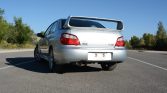 This 2004 Subaru Impreza WRX STi is finished in silver over black and blue cloth upholstery and is powered by a turbocharged 2.5-liter flat-four that drives all four wheels through a six-speed manual transmission. Equipment includes a Driver-Controlled Center Differential, an intercooler water sprayer, semi-automatic climate control, front and rear limited-slip differentials, an STi-specific aero kit, HID headlights, 17″ BBS wheels, and Brembo brakes. Modifications consists of a Cobb turbo-back exhaust system, upgraded sway bars, strut tower…